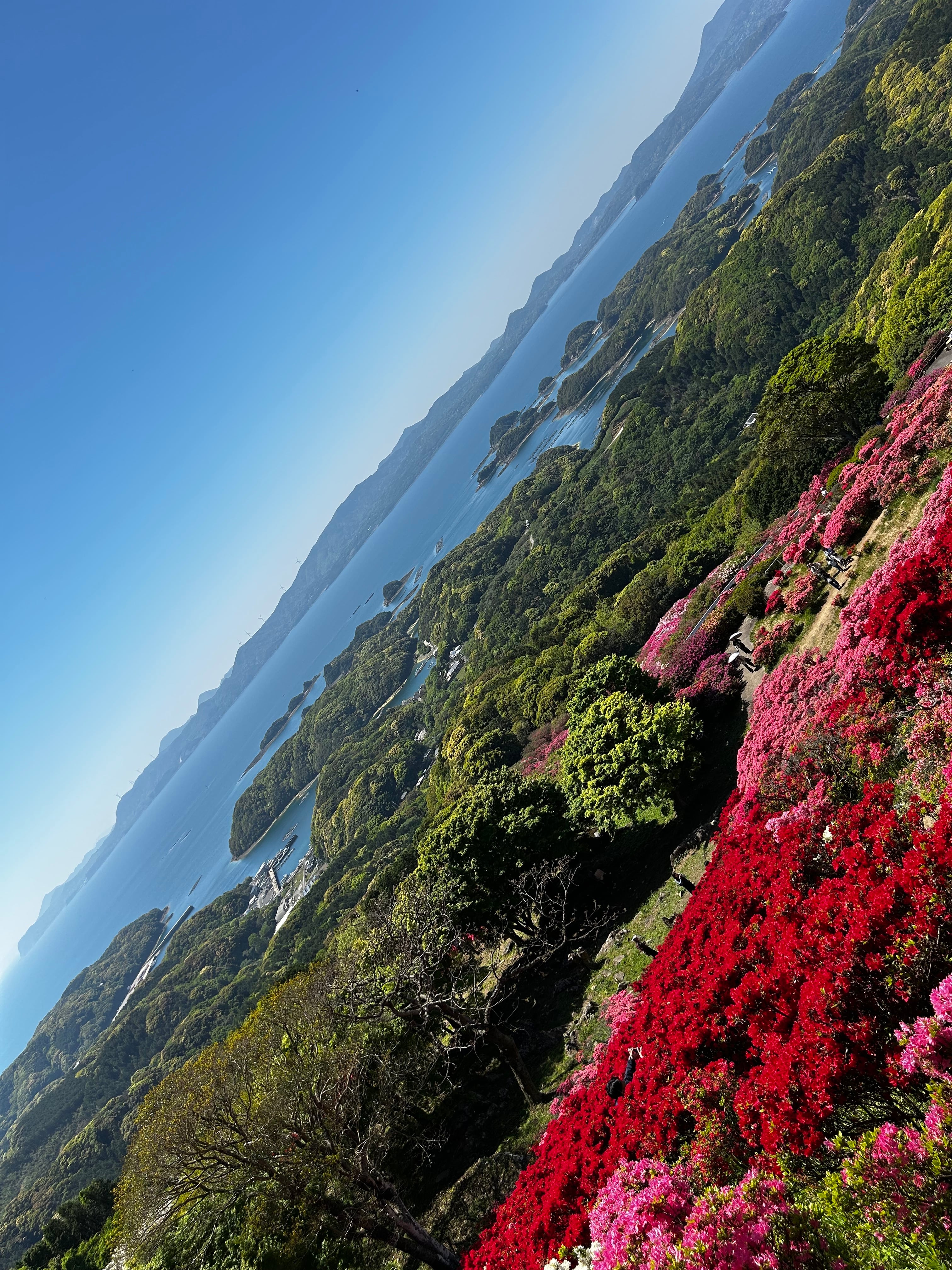 満開のつつじと、九十九島の絶景が圧巻で、素晴らしいので、是非観に来て頂きたいです。