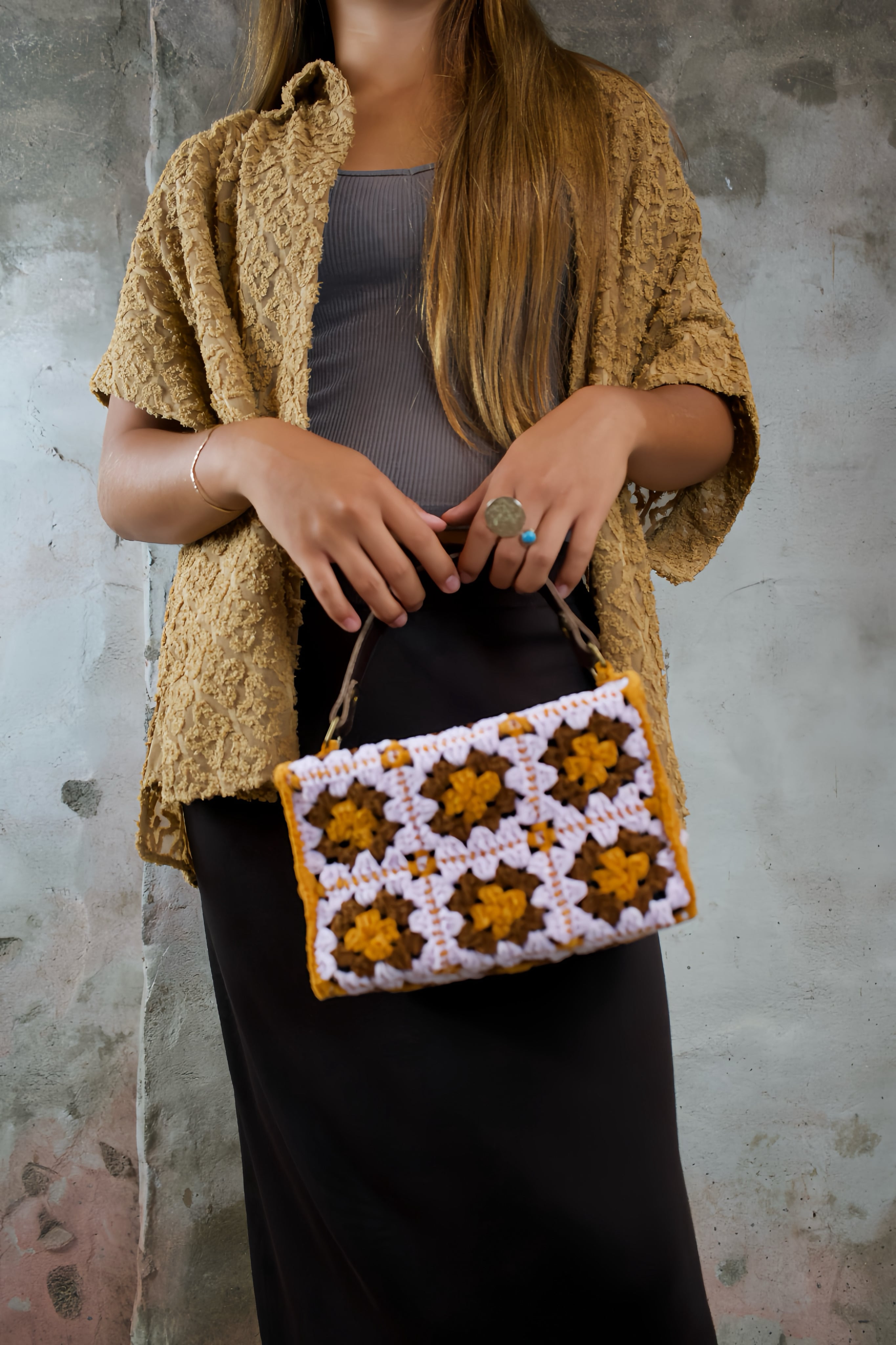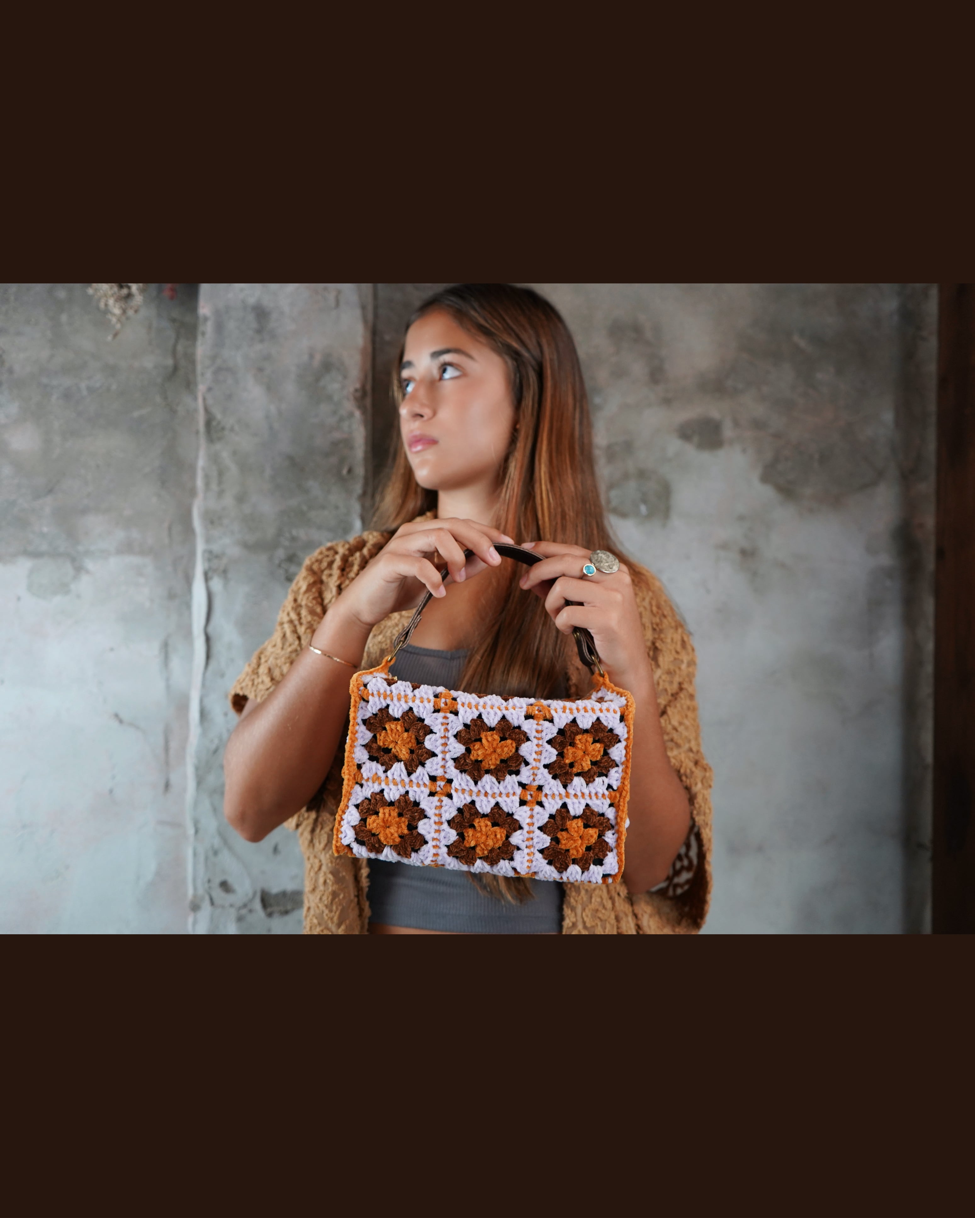 ◻︎クロシェキャメル、茶色、薄紫