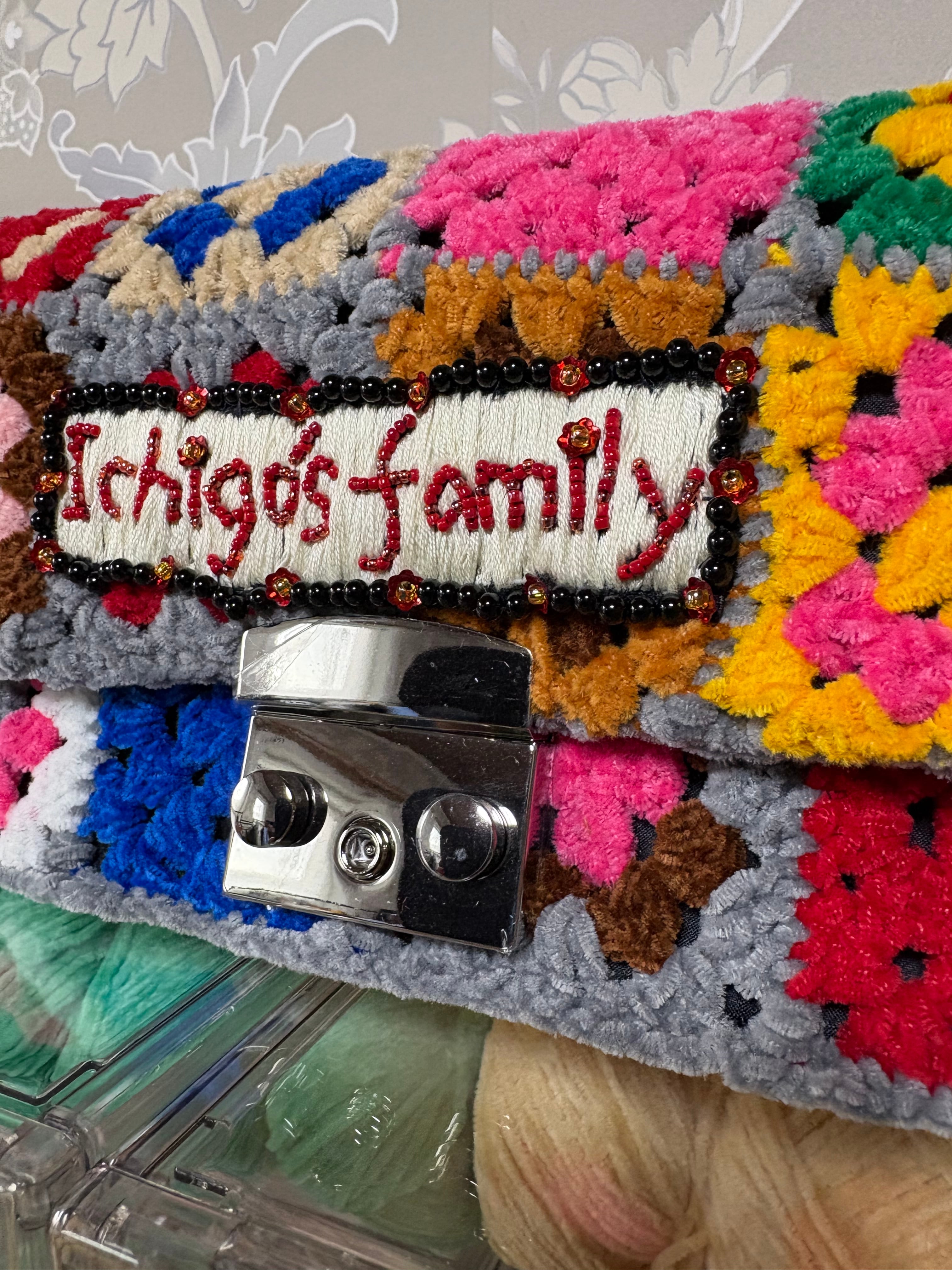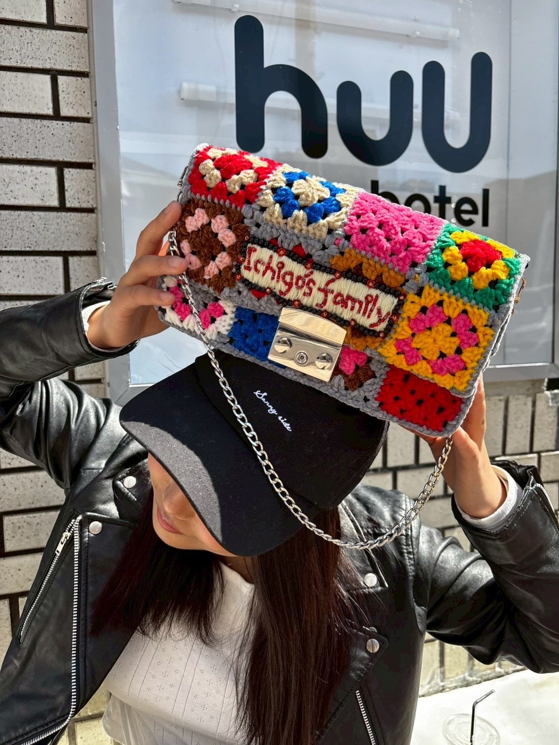 ビーズ刺繍のブランドタグが特長のショルダーバッグです。繊細な刺繍が魅力的なポイントとなっており、普段使いから特別な日まで幅広くお使いいただけるアイテムです。肩にかけやすいデザインで、持ち運びも快適です。